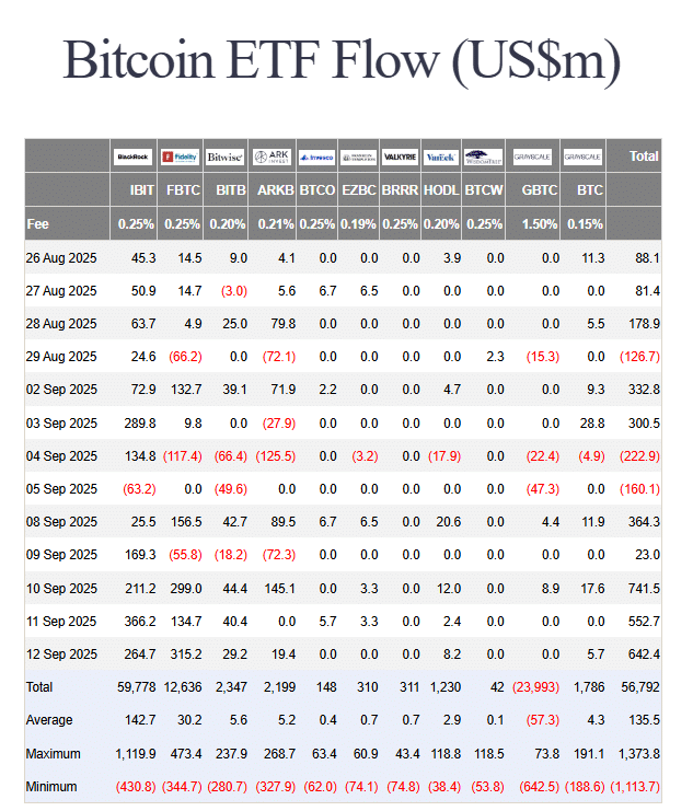 日期:2025-09-14 21:19:51 栏目:javascript 阅读:  etf增加近20亿美元,比特币在政策决定前测试11.6万美元