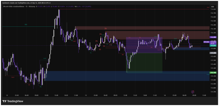 移动平均线显示稳定的支撑位,但相对强弱指数(RSI)显示该资产没有超买,为潜在的上行运动留下了空间。若决定性突破116,200美元,可能为升向118,000美元铺平道路,而未能守住支撑位则可能测试114,500 - 115,000美元。