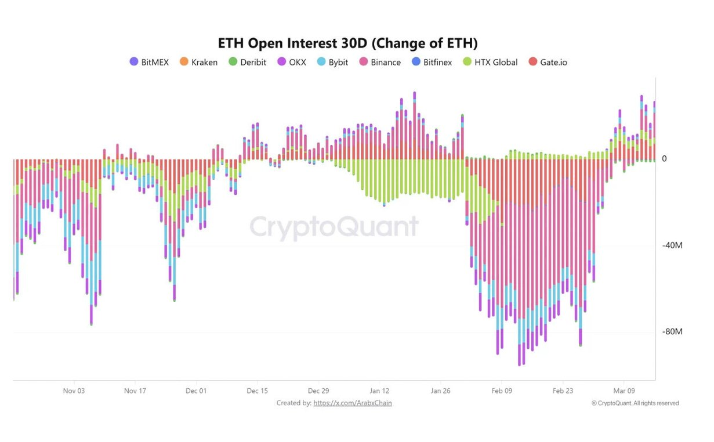 在 24 小时内,以太坊的未平仓合约数量激增 18,原因是交易员在各大交易所纷纷建立仓位。