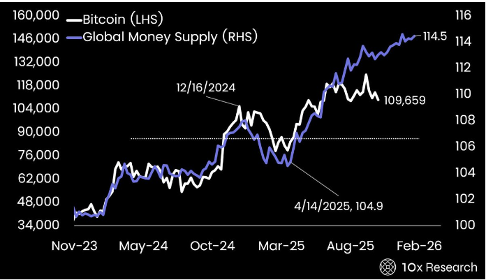 10x Research指出了几个证明这种转变的时刻。2024年末,全球货币供应量大幅增加,但比特币的价格却停滞不前。同样的模式在2025年4月和最近再次出现。每一次,罪魁祸首都不是宏观模型的失败,而是缺乏积极的资金流入。