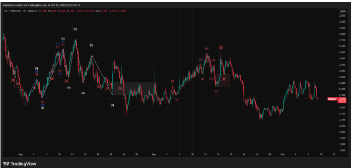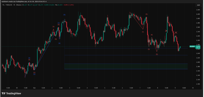 从技术上讲,在9月底多次尝试突破失败后,FIL继续在2.20 - 2.40美元盘整区间震荡。2.25美元区域是近期支撑位,而2.37 - 2.41美元仍是关键阻力位。