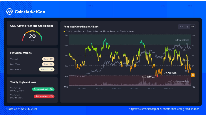 最近两次发生在2025年3月和4月,当时该指数跌至20以下。在这两种情况下,比特币都很快找到了局部底部,并在五天内开始反弹。交易员们现在在问,这第三次陷入极度恐惧是否会再次为复苏奠定基础。