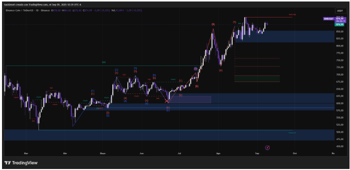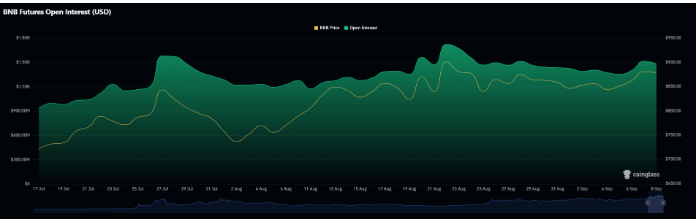 BNB目前的交易价格较历史高点899.77美元低约2.37%,表明该资产正接近在前几个周期中引发获利回吐的阻力位。不断上升的期货未平仓利息(目前为14.9亿美元)表明,投资者对衍生品敞口的兴趣越来越大,尤其是当交易员在895美元阻力位附近建仓时。如果突破这一水平,可能会开启重新测试历史峰值的道路。