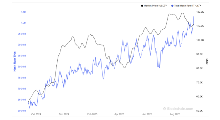日期:2025-09-13 23:24:07 栏目:rust 阅读:  链上数据显示,尽管网络难度处于创纪录水平,但7天平均比特币哈希率已飙升至历史新高(ATH)。 比特币挖矿哈希率最近急剧上升“哈希率”指的是一个比特币指标,它跟踪矿工作为一个整体连接到BTC区块链的计算能力总量。该度量对于衡量这些链验证者之间的情绪很有用。