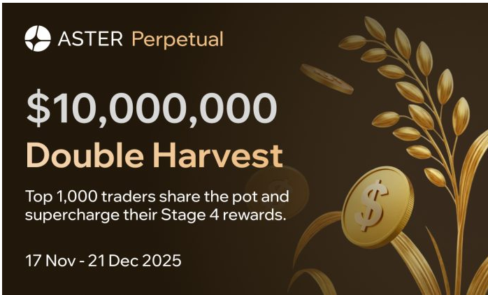去中心化的永久交易所Aster正进入快速扩张阶段。继第三阶段的强劲表现之后,该平台推出了第四阶段(收获)空投计划,并将于11月17日启动“双丰收”交易比赛,总奖励池为1000万美元。与此同时,Aster继续扩大其早期资产产品Rocket Launch的规模,扩大新代币活动的渠道。