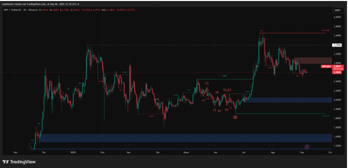 最近的活动影响了瑞波币的市场行为。Ripple Labs证实,贝莱德(BlackRock)数字资产总监Maxwell Stein将参加即将举行的SWELL 2025会议,这可能会增加Ripple的机构相关性。