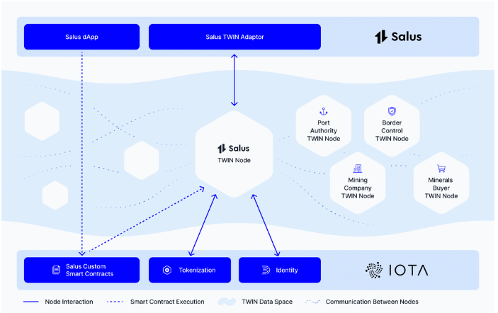 在中心,Salus将IOTA的TWIN堆栈应用于关键矿产交易。该平台为供应商、仓库、承运人甚至集装箱颁发可验证的身份。然后,它在IOTA的分类账上注册凭证,以便参与者可以检查交易对手方并满足KYC/AML要求。