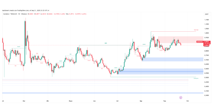 随着5.3亿只ADA在两天内移动,鲸鱼活动激增,引发了对大规模抛售压力的新一轮担忧。0.85美元的技术支撑仍然至关重要,而相对强弱指数超卖状况可能导致短期反弹。