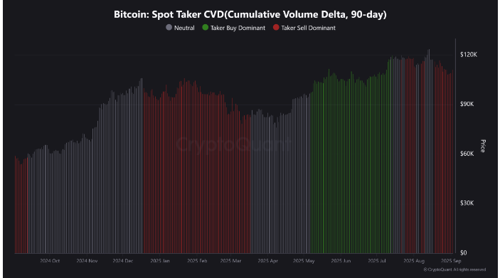 比特币现货持有者CVD(累计成交量Delta, 90天)