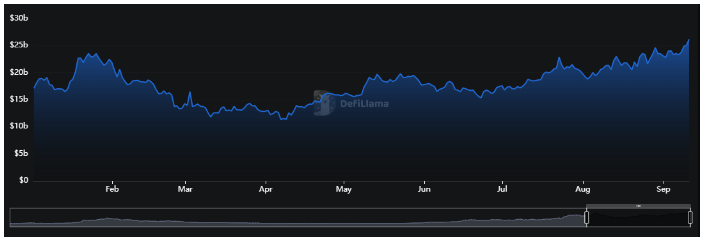 日期:2025-09-12 23:50:56 栏目:swift 阅读:  根据DeFiLlama的数据,索拉纳的总价值达到125.31亿美元,超过了1月份的117.51亿美元,这表明今天的连锁承诺更加深入,Jupiter Lend的公测版在两周内积累了6亿美元的存款,使Jupiter的TVL达到33.8亿美元。