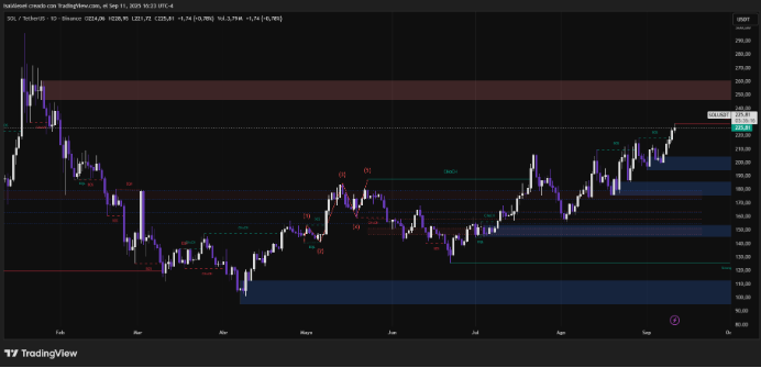SOL目前的交易价格接近227美元,上一次出现在2025年2月的水平。随着SOL的升值,存款的美元价值也会增加,因为许多池和押注余额都是以SOL计价的。