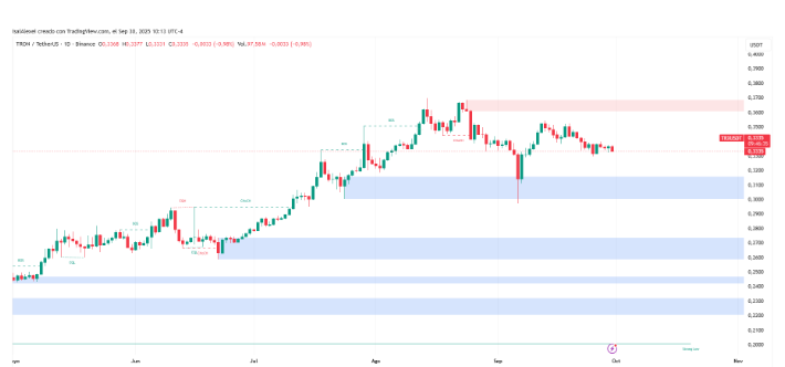 从技术面来看,TRX在阻力位0.35美元下方交易,近期支撑位在0.32 - 0.33美元附近。分析师认为,如果TRX守住该区域上方,其目标可能是反弹至0.36 - 0.38美元,而跌破0.32美元可能导致进一步回调至0.30美元。