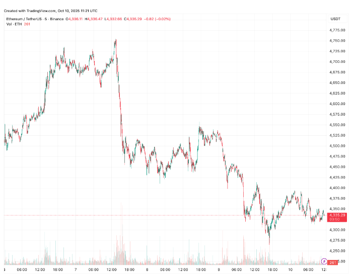 尽管价格下跌,但价格走势表明,以太坊正在4250美元的关键水平上方形成一个基础,该水平自10月初以来多次充当支撑。