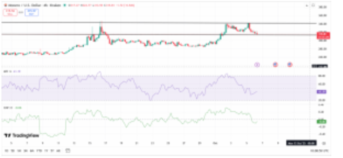 在4小时图表上,资金流动指数(MFI)位于41.19,表明可能从抛售枯竭转向重新强劲的买入。与此同时,Chaikin Money Flow (CMF)虽然仍为负,为-0.06,但呈上升趋势,这是资本流入和积累改善的早期迹象。