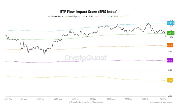 CryptoQuant指出,这种基于流量的支撑模型不同于传统的技术分析:它衡量的是前瞻性的机构行为,而不是价格历史。从本质上讲,EFIS将资本流动与更广泛的宏观因素隔离开来,使分析师能够区分健康的获利回吐和结构性外流。