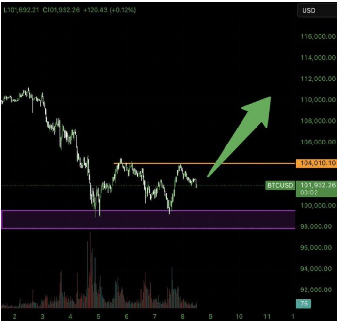 决定性的突破104K美元可能会激活向111K美元的看涨延续,而拒绝低于98K美元将使结构失效并暴露更深的下行空间。